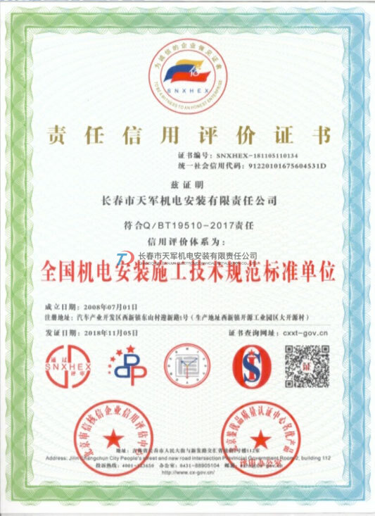 吉林省守合同重信用示范企業(yè)