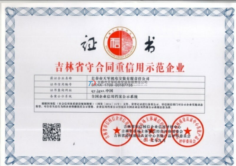 吉林省守合同重信用示范企業(yè) -